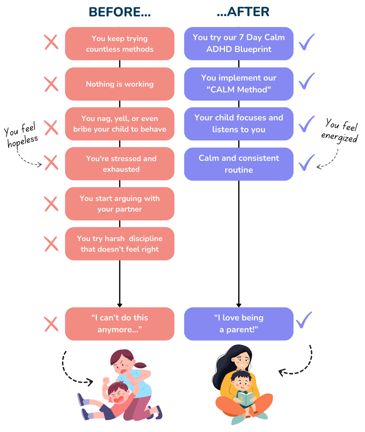 Your child will start focusing on tasks and managing their impulses better. And you'll feel more calm, confident, and in control while enjoying more peaceful family time..